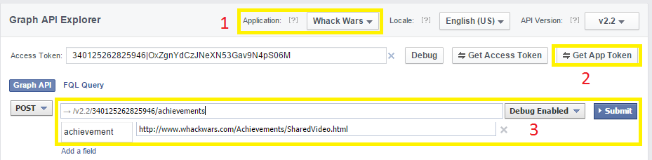 Once the file is created and uploaded without errors, we need to register the achievement in Facebook. First, we need to navigate to the Open Graph Explorer